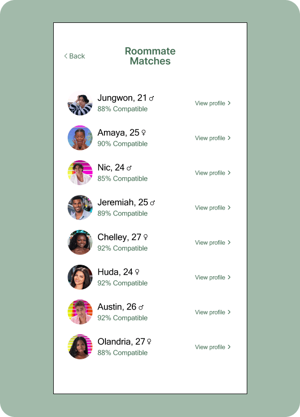 With the ongoing socioeconomic shifts and living with roommates as an economic driver, I wanted to replace the stressful high-stakes gamble of random roommates for a structured, data-driven match that gives confidence in the roommate search.