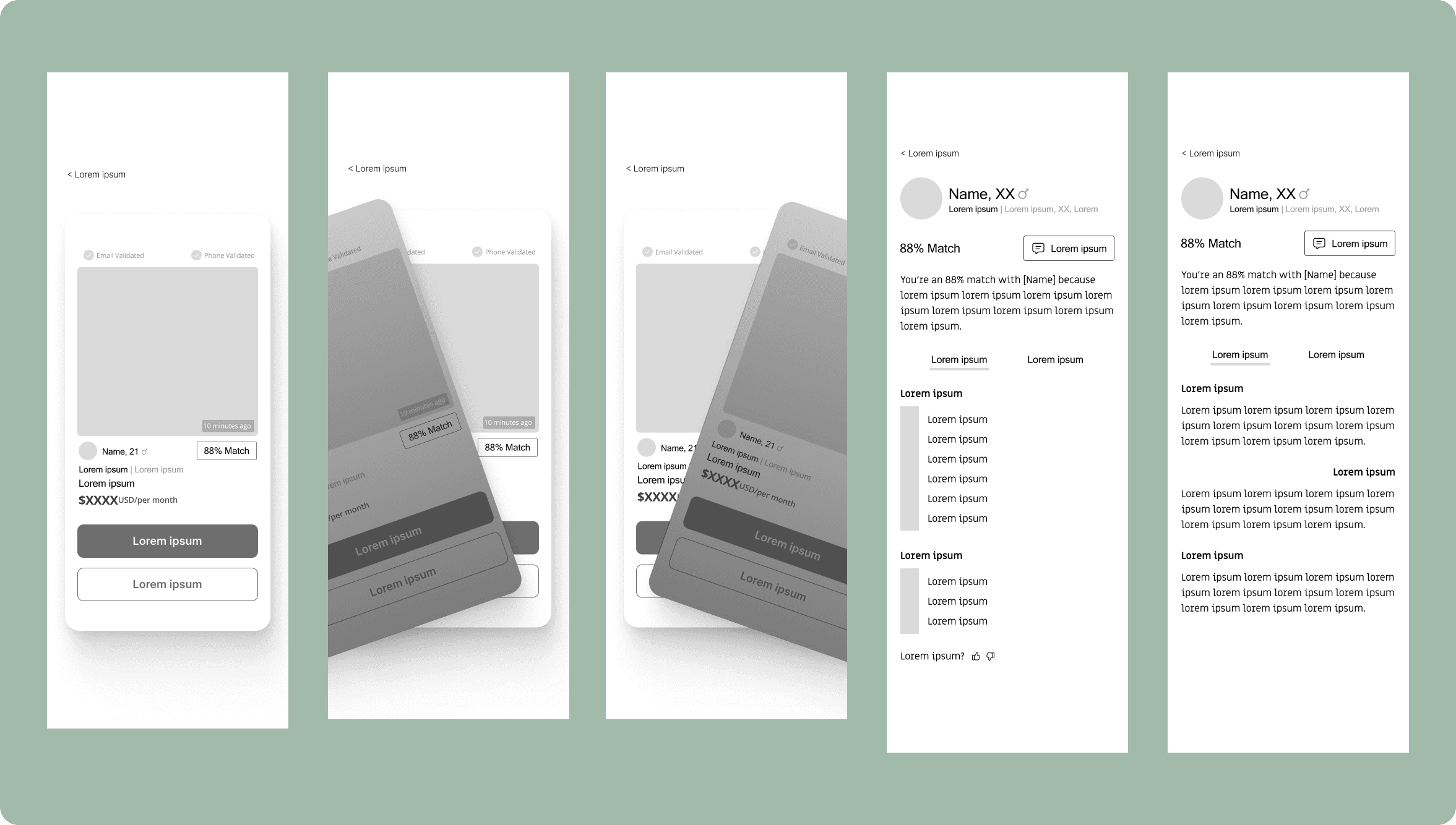 In the low-fidelity designs, I decided to utilize a swipe feature that users can utilize on their compatible roommate matches.
